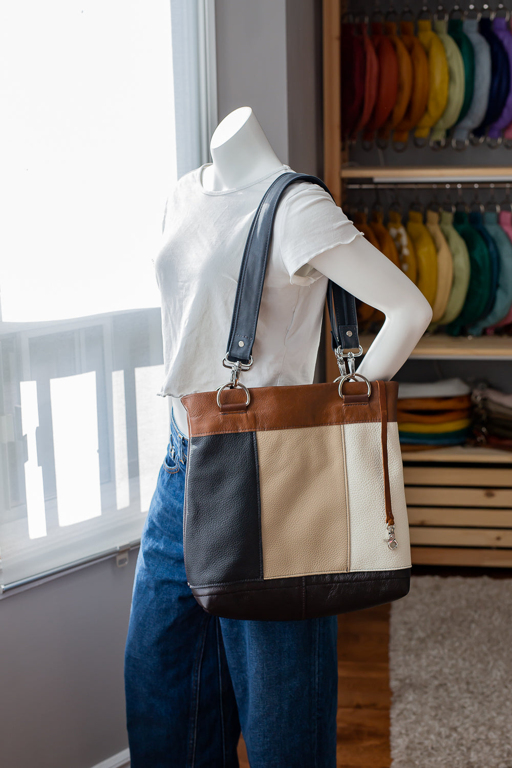 Chestnut - Patchwork Leather Shoulder Tote